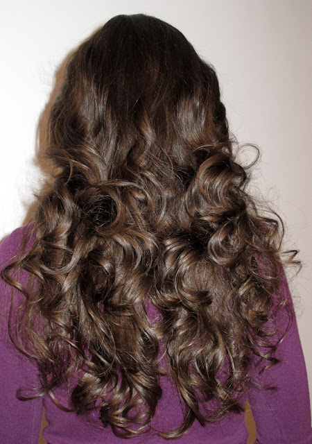 Poza este suficient de mare si puteti observa ca buclele nu sunt “adunate” sau imbacsite. La atingere se simtea ca dupa aplicarea unui balsam bland. Buclele erau foarte flexibile si ma asteptam ca in doua-trei ore sa se lase pentru ca parul era foarte moale. Parul mirosea discret si placut, fara iz de alcool sau parfum ieftin.