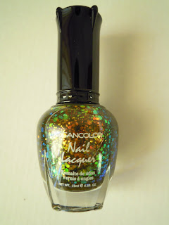 Primul lac de unghii din cele prezentate ieri care m-a tentat: Chunky Holo Black 236 de la Kleancolor. Se usuca relativ repede. L-am aplicat pese un negru ieftin si nu foarte calitativ, cam greu de folosit, de la Chissa (de la metrou).