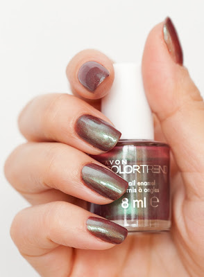 Doua oje Avon la 7,99 (preturile sunt estimative si difera in functie de campanie), una din noua gama suede (astept cu nerabdare s-o incerc, pare foarte interesanta dar mai degraba pare metalica decat suede) si una duo chrome. Yup, duo chrome la Avon. Si, daca nu ma credeti priviti pozele de mai jos (fiind duo chrome este foarte lichida si necesita minim 4 straturi asa ca am aplicat-o peste o oja maro deschis no name):