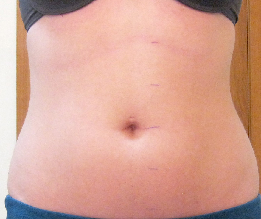 Rezultatele spectaculoase au venit dupa a doua sedinta. Spun spectaculoase pentru ca 4 centimetri in zona ombilicului inseamna foarte mult pentru doua sedinte si pentru inaltimea si greutatea mea (1.57 si 49,4 kg imbracata). Masuratorile de la B se refera la zona aflata la 5 cm mai jos de ombilic iar zona A se afla la 10 cm mai jos de ombilic. Puteti vedea marcajele in imagini. Dupa a doua sedinta nu am mai mers pe banda pentru ca in nici doua ore ma astepta o distractie la kangoo jumps in urma careia a trebuit sa-mi storc hainele, atat de tare am transpirat.