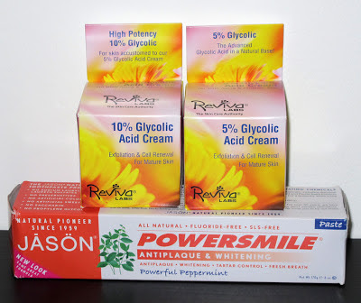 – Reviva Labs 10% Glycolic Acid Cream si Reviva Labs 5% Glycolic Acid Cream, ambele cu review-uri foarte bune pe site. Le-am ales, evident pentru petele solare si de la acnee de care se pare ca imi este ingrozitor de greu sa scap. Si daca as sta mai bine cu rabdarea poate ar fi altceva dar eu vreau sa treaca ieri! In decembrie va aratam un alt gel pentru pete de la Reviva Labs, tot cu acid glicolic. L-am folosit dar nu atat de mult. Mi s-a parut ca actioneaza extrem de lent si m-am reorientat catre BHA si Effaclair Duo. Acum am ales ceva mai concentrat. Sper sa am mai mult noroc.