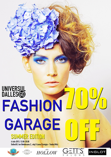 Fashion Garage este un eveniment manifest DallesGO, un targ cu piese noi, vintage si de designer la 70% discount, unde primesti consiliere de imagine de la stilistii DallesGO. Aflat la cea de-a doua editie, Fashion Garage SALE iti propune o zi de smart shopping, style advice si sesiuni de make-up si hairstyling care te pregatesc pentru vacanta. O experienta de shopping interactiva, cu sfaturi de stil si invitati surpriza din lumea modei!