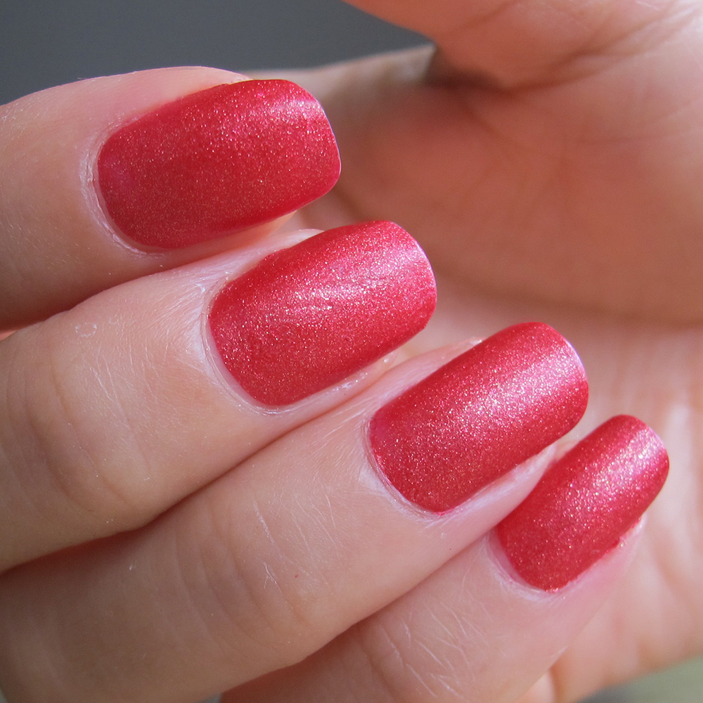 M-a impresionat prin puterea de acoperire. Este de departe una dintre cele mai concentrate oje pe care le dețin, dacă nu chiar cea mai concentrată. Ce nu mi-a plăcut a fost că se usucă extraordinar de greu peste o bază. Am încercat cu ambele produse Trind, Nail Repair Natural și Keratin Nail Protector. La prima accidentare oja zbura – aluneca efectiv de pe bază. Un alt aspect, cumva normal pentru o ojă mată, este că se tocește la vârfuri, mai ales când tastezi în disperare așa cum am făcut eu ieri.
