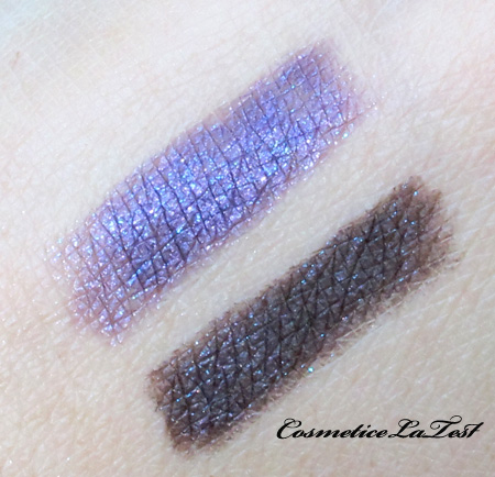 Sunt foarte rezistente, pe cel mov l-am purtat ieri toata ziua si nu s-a miscat de la locul lui. Swatch-urile a trebuit sa le spal bine cu sapun pentru ca nici dupa doua ture de spalat vase nu s-au urnit.Sa-mi iertati pozele, sunt facute cu diverse lumini si setari. Desi le-am prelucrat pe monitorul sotului meu fotograf e posibil ca la voi sa se vada in diverse moduri. M-am straduit sa scot culorile reale ale fardurilor lasand decorurile in diverse nunate.