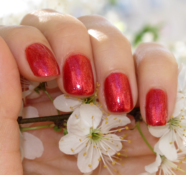 Oja pe care vreau sa v-o arat azi a fost achizitionata impreuna cu Ludurana acum aproape o luna. Ar trebui sa fie un multichrome cu 4 nuante de rosu. In realitate e foarte greu sa le remarci (iti trebuie mai multe tipuri de lumina) iar in poze a fost aproape imposibil sa le surprind. Ce-a iesit judecati voi 🙂