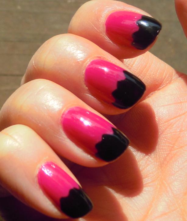 M-am imbolnavit cu modelele lui Chloe (de fapt Erika) realizate cu scotch si, cum era de asteptat, nu m-am lasat pana nu am facut rost de foarfeci ca ale ei sa pot taia frumos banda. Pentru o prima incercare mi se pare decent. Din pacate Fast Forward Top Coat de la China Glaze mi-a dizolvat oja roz pusa intr-un singur strat si a trebuit sa completez. Nu se vede dar stiu eu si ma enerveaza…