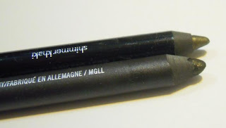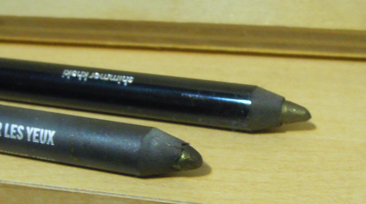 Dar am aflat si eu recent (cred ca am aflat ultima!) de existenta “creioanelor gel” SUPERshock de la AVON care, de asemenea, au culori intense si aluneca foarte usor. Prin urmare, cu prima ocazie cand am pus mana pe un catalog am comandat fara mila trei nuante, printre care si nuanta shimmer khaki pe care voiam s-o compar cu MAC.