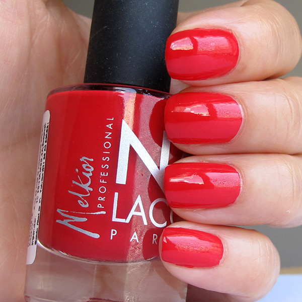 Oja de azi si-a asteptat cam mult randul pentru ca, evident, m-am gandit cum probabil va veti gandi si voi: “iar rosu?”. Tot vazand-o prin blogosfera am decis sa-i dau o sansa. Este una dintre ojele primite in iarna la intalnirea bloggeritelor de beauty.Cand vezi oja Melkior te impresioneaza mai intai marimea sticlutei – 15 ml de oja intr-o sticluta mai mare cu aproximativ 30% decat era necesar. Nuanta mea se cheama Pure Seduction. Culoarea este un rosu clasic, spun eu, nici spre portocaliu si nici spre fucsia. Insa surprizele apar cand incepi s-o folosesti. Surprize placute, evident.