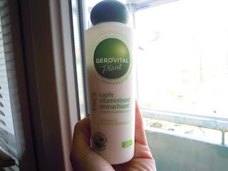 Incep cu Laptele vitaminizant demachiant Gerovital Plant cu extract de floare de colt . Daca ma interesa asa mult lista de ingrediente luam netul la puricat inainte sa desfac capacul. Si daca mi se parea ultra-mega-nociv pentru mine nu-l foloseam si pace, ba chiar il returnam sau il faceam cadou. Dar nu m-a interesat, am desfacut capacul si am mirosit. Mie-mi place mirosul gamei la nebunie. E fresh, e placut pentru nasul meu. Dupa mirosit am citit eticheta… sa vad cum se foloseste. Mi-am zis “ok, e genul de aplicare cum nu-mi place mie” dar din experienta stiu ca genul acesta de demachinate functioneaza bine NUMAI asa cum scrie pe ele. Prima data am pus in mana cam mult, nu stiam cum se va intinde pe fata. Si a mers. Foarte bine, chiar. In perioada cat l-am folosit am purtat fond de ten mineral, deci unul cu acoperire putin peste medie dar pe care eu il aplic cu generozitate :D. Dupa demachiere mai sterg putin cu o discheta cu lotiune micelara insistand in zona unde incep firele de par caci cu laptele demachiant sunt un pic reticenta pe-acolo. Apoi clatesc cu apa; am un fix: sa nu-mi ramana nimic demachiant sau alta substanta de curatare pe ten inainte de aplicarea cremei. Ma clatesc dupa orice demachiant sau dupa orice micelara ca asa ma simt eu bine. Dupa cateva zile am indraznit sa-l “mozolesc” si pe ochi. Zilnic port: fard in 2 nuante, tus, rimel si uneori si dermatograf. Deci un machiaj… consistent. Va spun sincer si-mi pare rau ca timpul nu-mi permite (acum) sa fac o demonstratie video ca o discheta demachianta mi-a fost suficienta la ambii ochi – folosita pe o parte si pe cealalta. Evident, am “limpezit” si cu putina micelara doar asa, de siguranta dar micelara putea foarte bine sa fie inlocuita cu apa de la robinet, asa cum fac adesea. De usturat, m-a usturat putin un ochi, dar data urmatoare am avut grija sa nu-mi mai intre in ochi demachiantul si a fost ok.